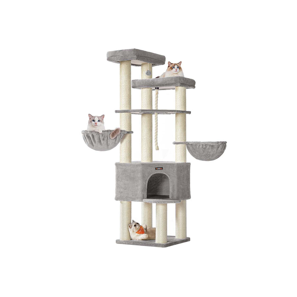 Com várias plataformas, tocas e colunas arranhadoras, ele atende todas as necessidades do seu gato: brincar, descansar, observar e arranhar — tudo em um só lugar!