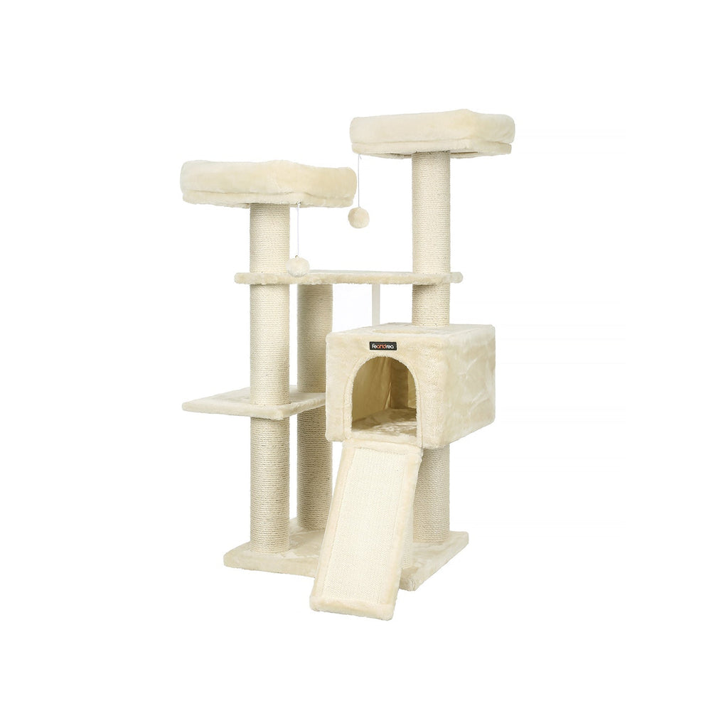 - 🧗♀️ Estável e seguro: com 4 postes grossos (11,3 cm de diâmetro) e sistema anti-tombamento, o arranhador suporta até 3 gatos brincando ao mesmo tempo sem balançar.